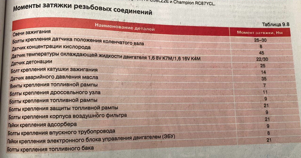 Момент затяжки шкивов рено логан