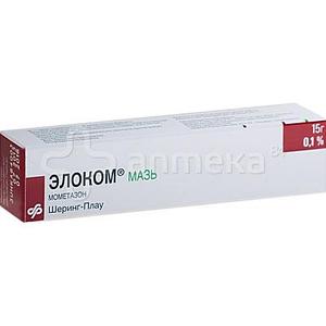 ЭЛОКОМ, мазь Действующее вещество - мометазона фуроат (mometasone) Состав и форма выпуска препарата Мазь для наружного применения однородная, белого цвета . Вспомогательные вещества: парафин мягкий белый - 94 .9 г, воск пчелиный белый - 4 г, пропиленгликоля моностеарат - 1 г . 10 г - тубы (1) - пачки картонные . 15 г - тубы (1) - пачки картонные .