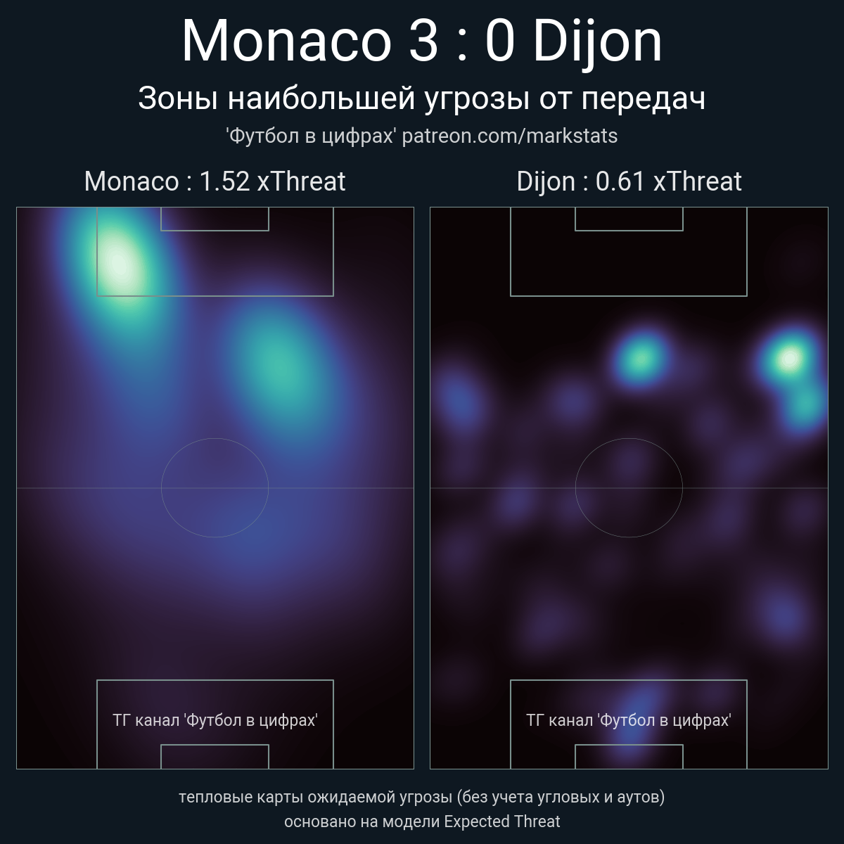 ▪ xThreat без учета угловых: 1.52 - 0.61