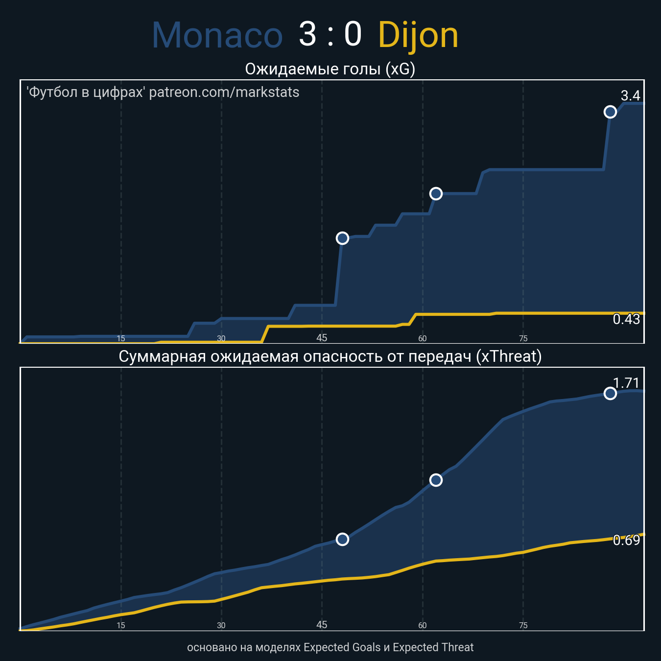 Футбол в цифрахСтатистика матча Monaco - Dijon