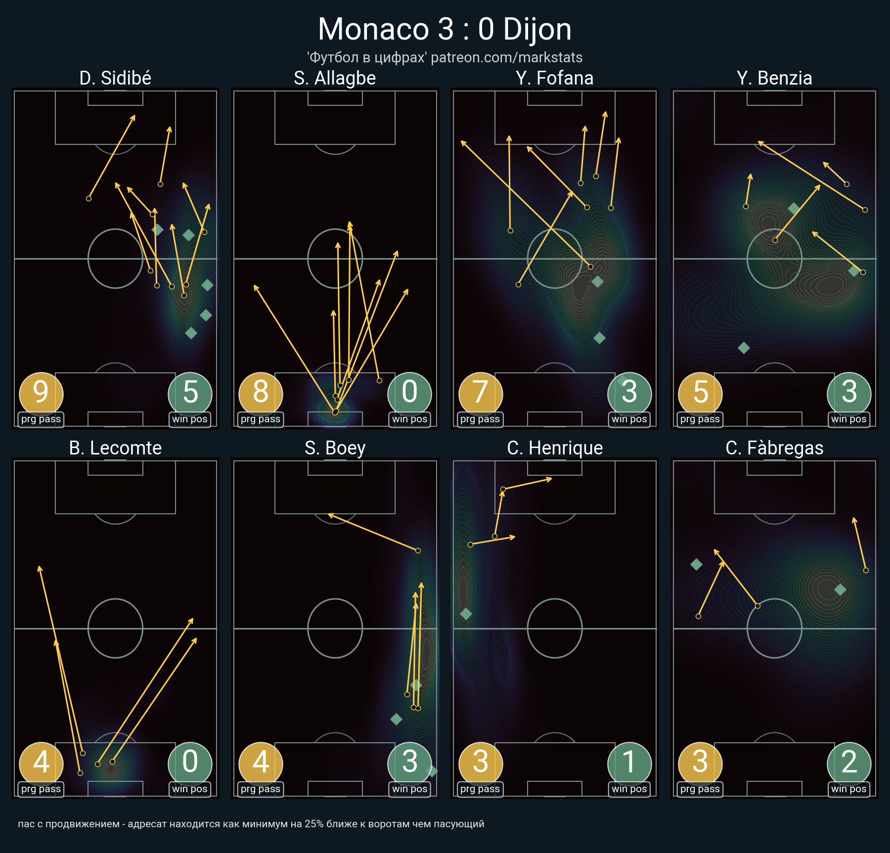 ▪ 32 успешных передач из 47 попыток (1 ассист, 1 под удар, 3 с продвижением, 10 на трети соперника)