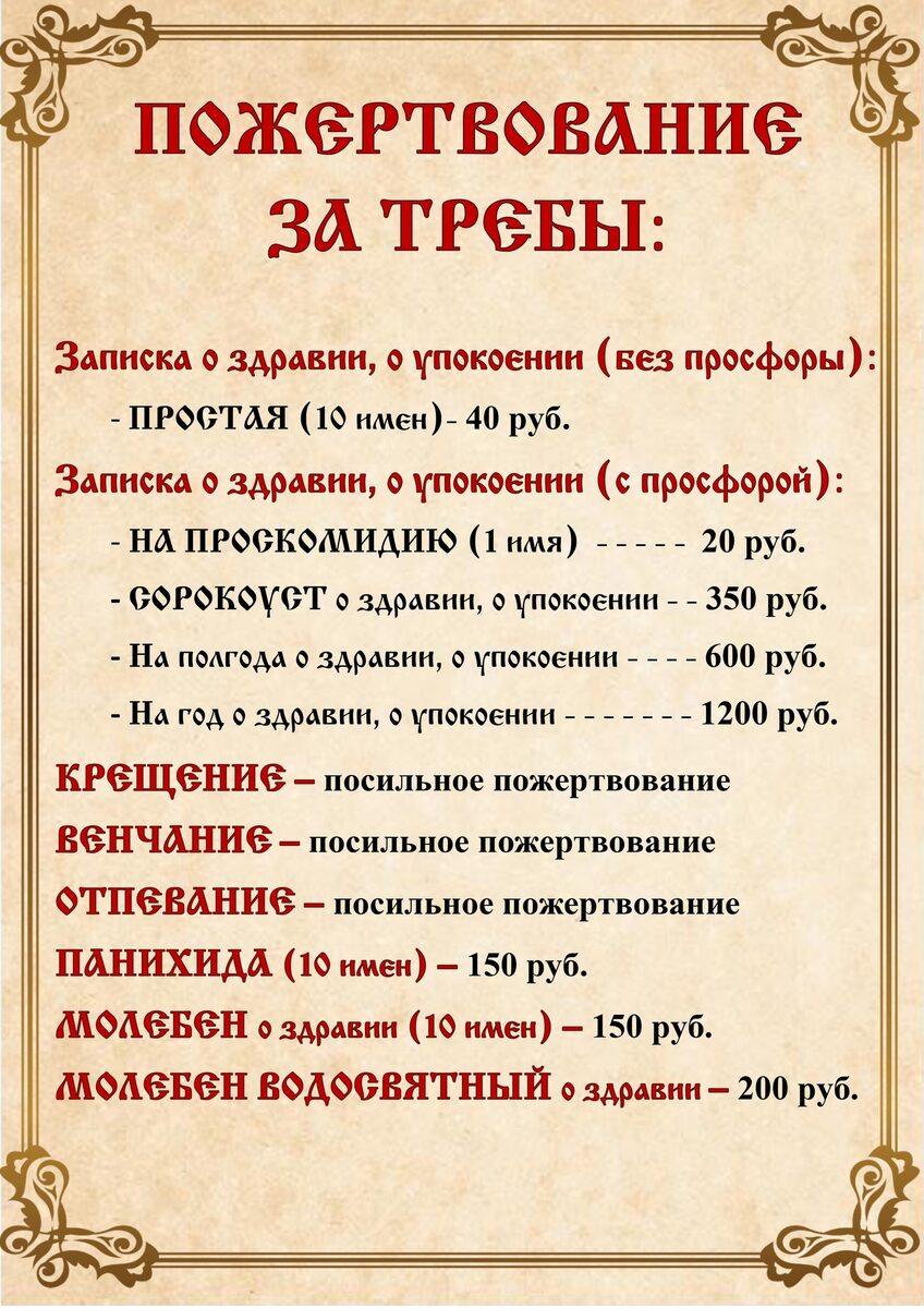 Монастырь требы на год
