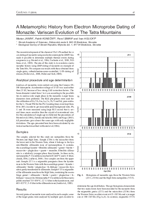 Monazite and Zircon Dating by the Chemical Th-U-Total Pb . . .