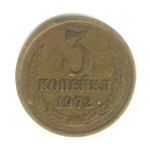 Монета 3 копейки 1972