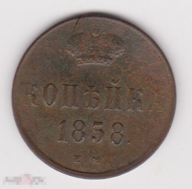 Монета копейка 1856