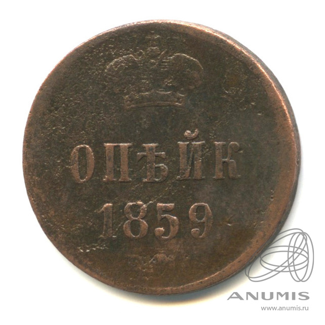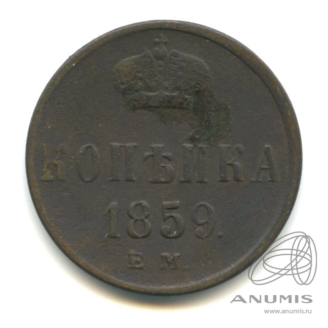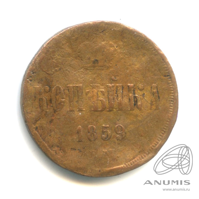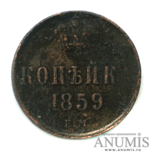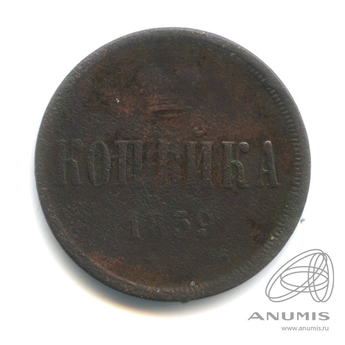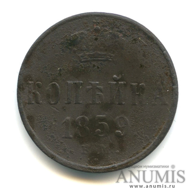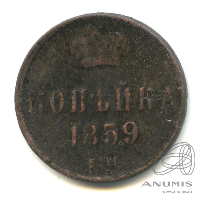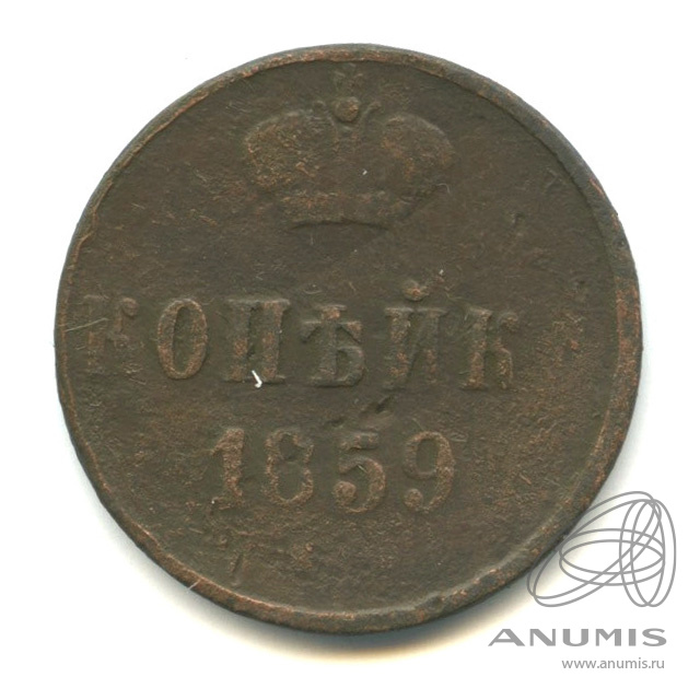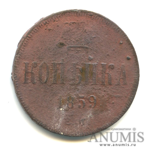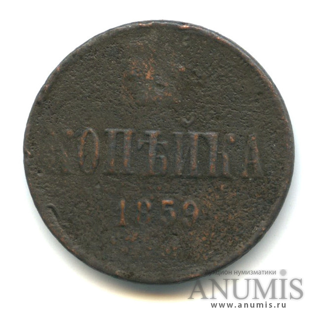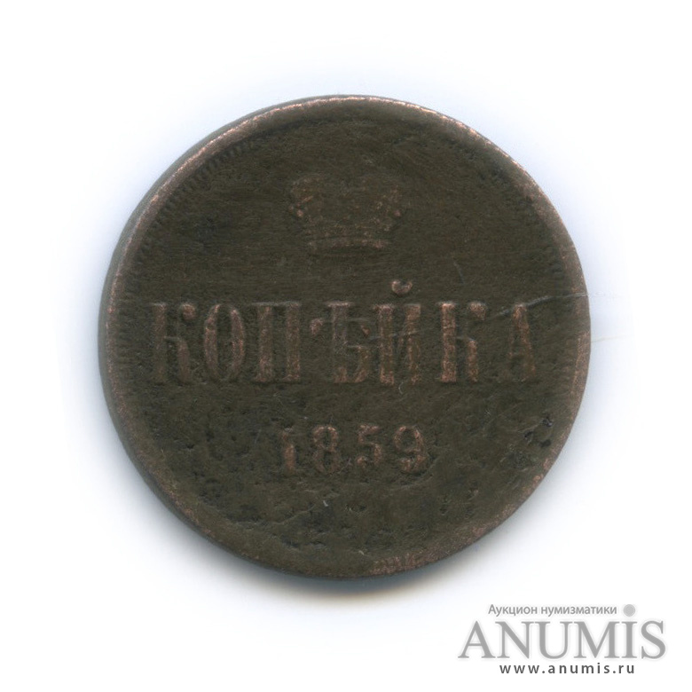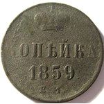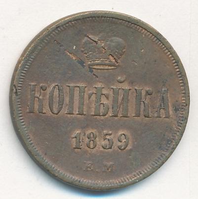 Монета копейка 1859 года