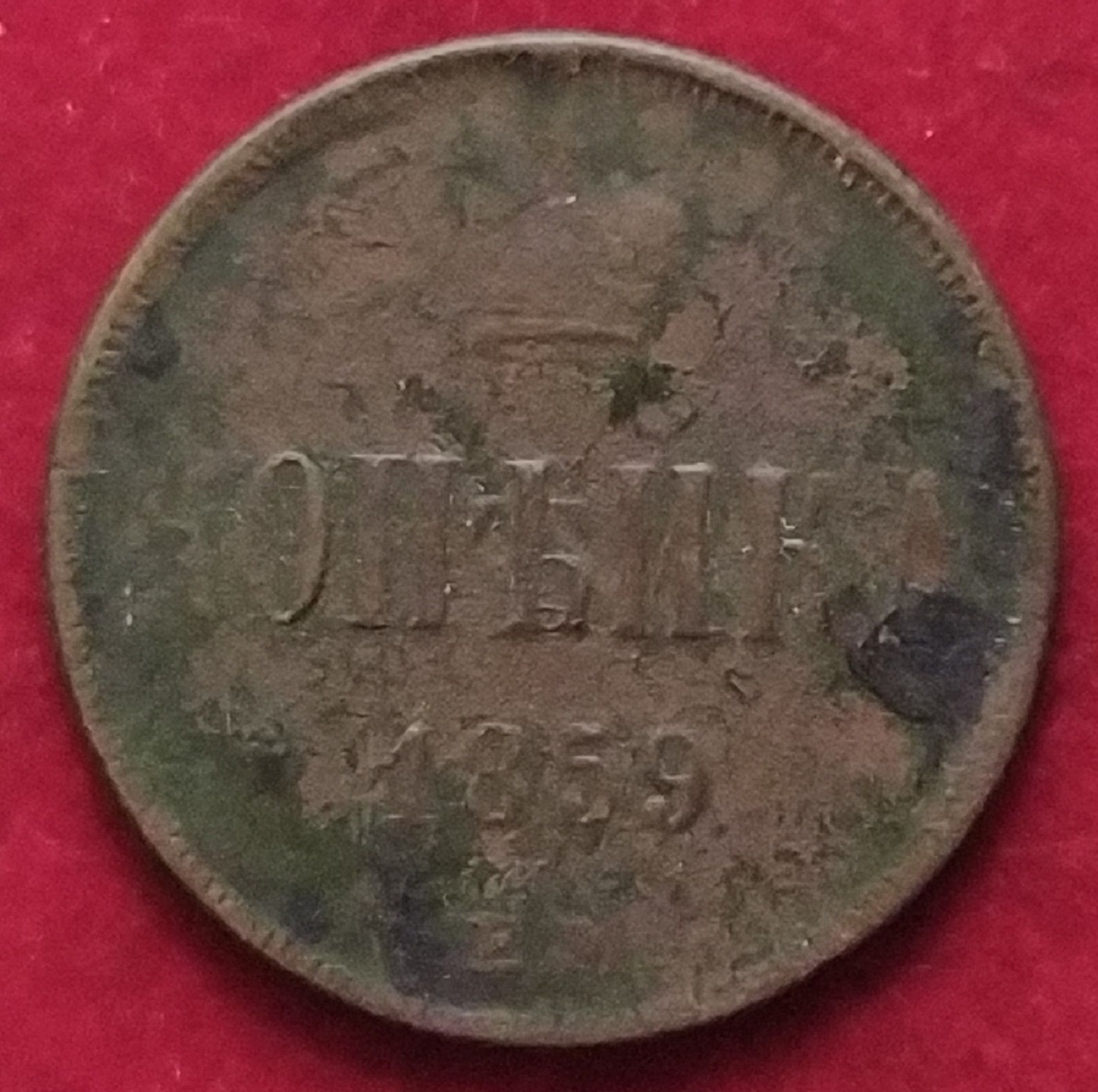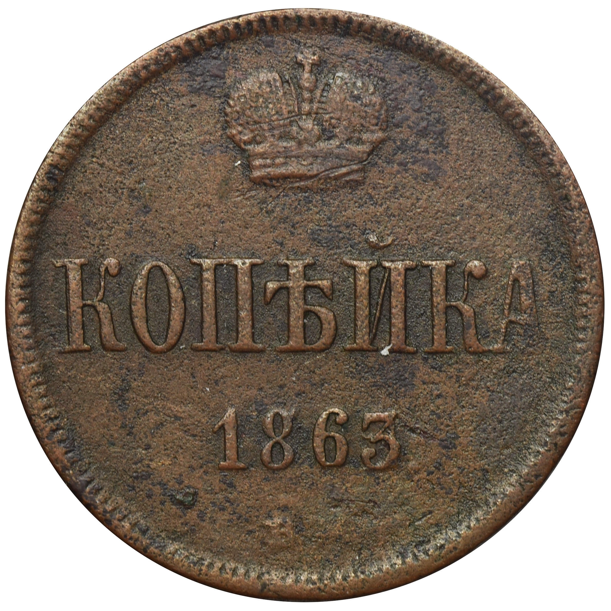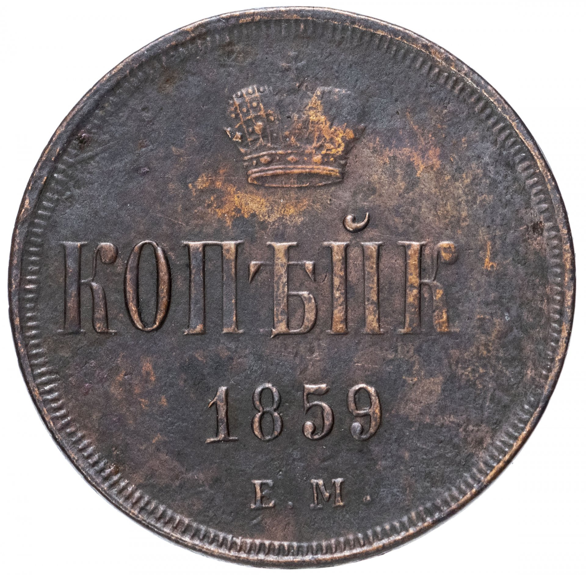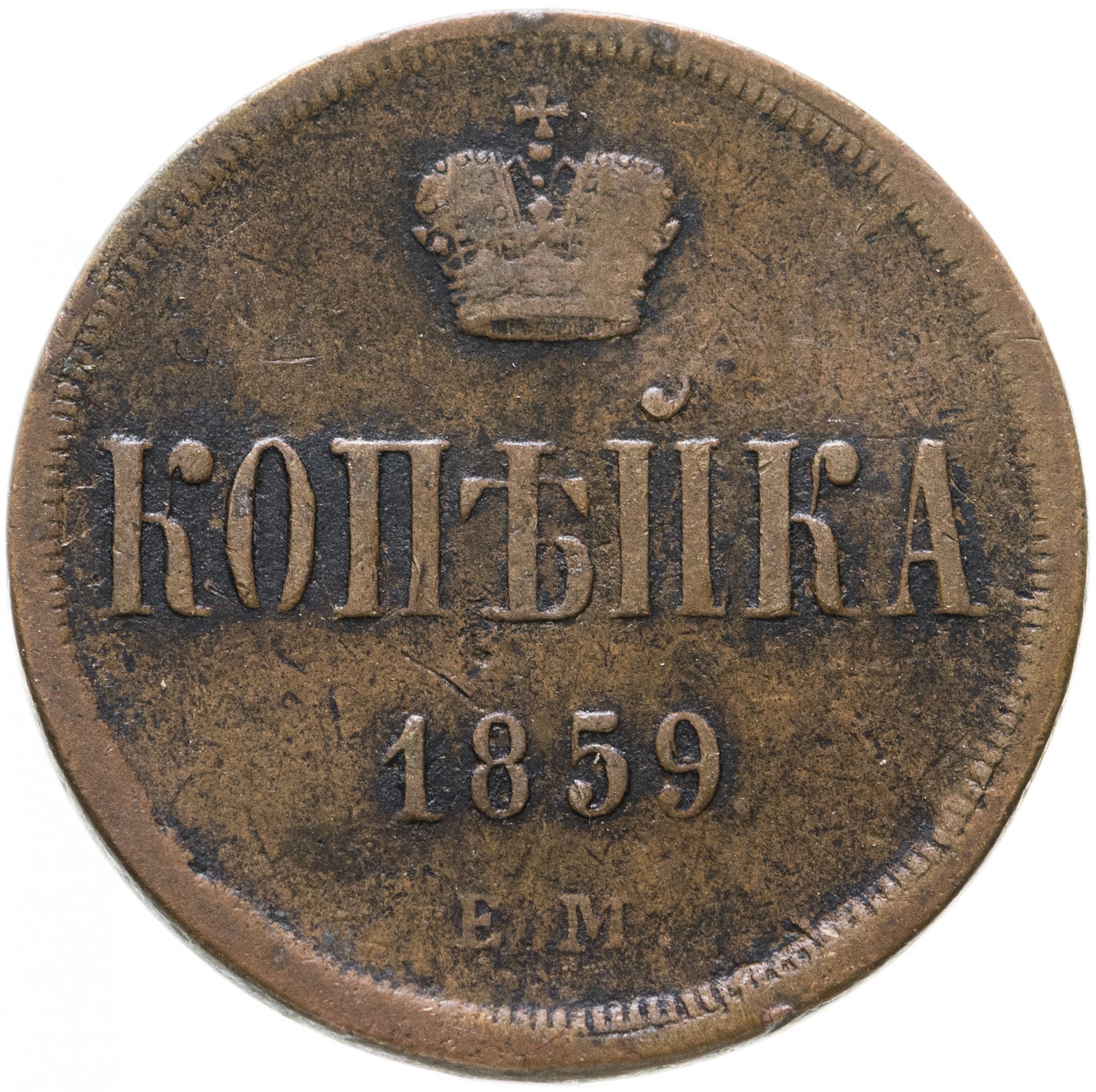 Монета копейка 1859 года