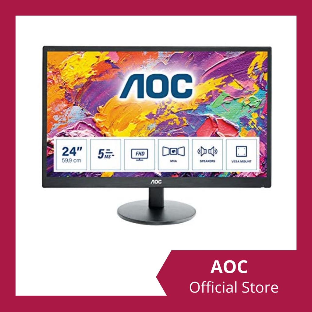 AOC M2470SWH 23 .6-inch display with Full HD resolution, 3000:1 contrast, built-in speakers and MVA panel technology for extra-wide viewing angles .