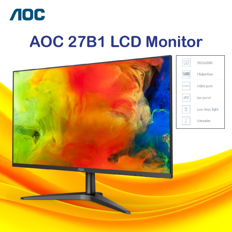 The AOC 27B1H offers brilliant image quality with crisp details via its Full HD IPS panel . The 27-inch monitor features IPS technology and slim bezels that sets it apart from the boring monitors of the past . The affordable AOC 27B1H is ready for your office work and prime-time entertainment, all the while looking sleek and modern on your desk .