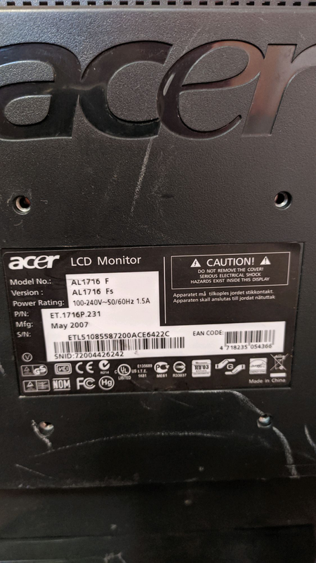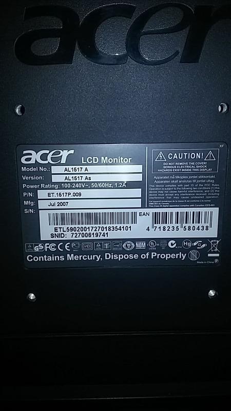 Монитор LOC, 17 инча ( 43 см ), 2007 . . . Acer 25' KG251Q 240Hz Gaming Монитор За части HDMI DisplayPort DVI . Компютърни аксесоари, части » Монитори 80 лв . По договаряне . гр . . .