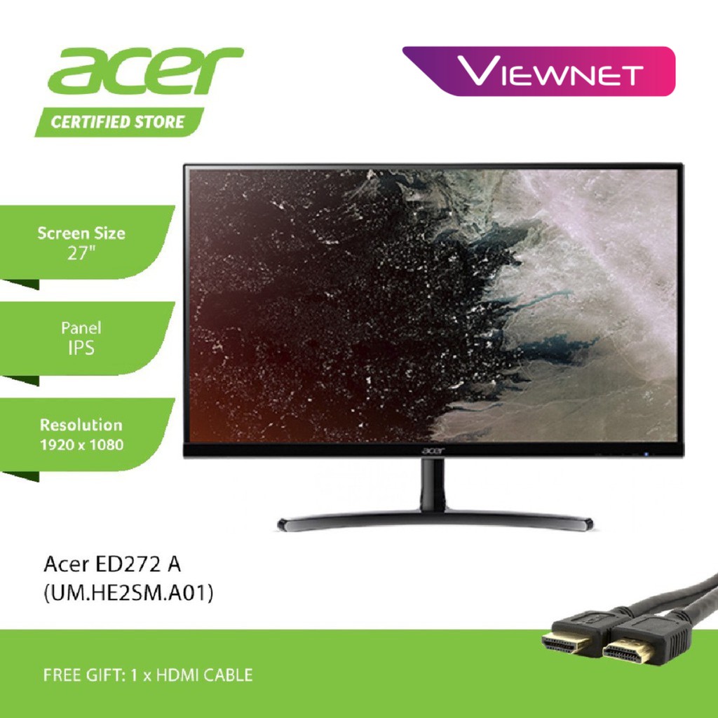 ED2 . Model Name: ED272 Abix . Part Number: UM .HE2AA .A01 - 16:9 - Full HD - Maximum Resolution 1920 x 1080 - Brightness 250 Nit - Color Black . $ 179 .99