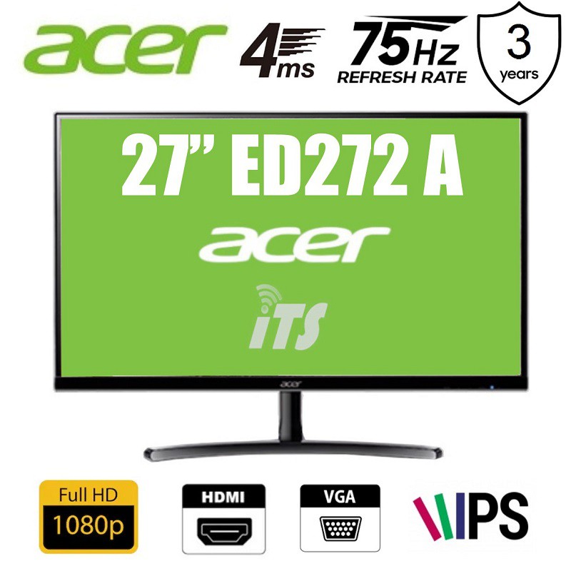 Buy Acer Display ED272 Abix, 27" IPS 75Hz 1920 x 1080 - FHD 16:9, 1K:1 - Contrast, 4MS GTG - Response, 1x VGA, 1x HDMI, W/Tilt Adjustment, Black: Monitors - Amazon .com FREE DELIVERY possible on eligible purchases