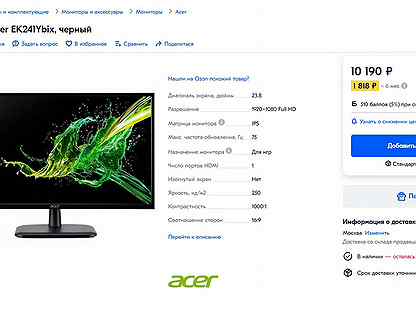 Монитор 23 .8" Acer EK241Ybix - UM .QE1EE .008 UM .QE1EE .008 . . .