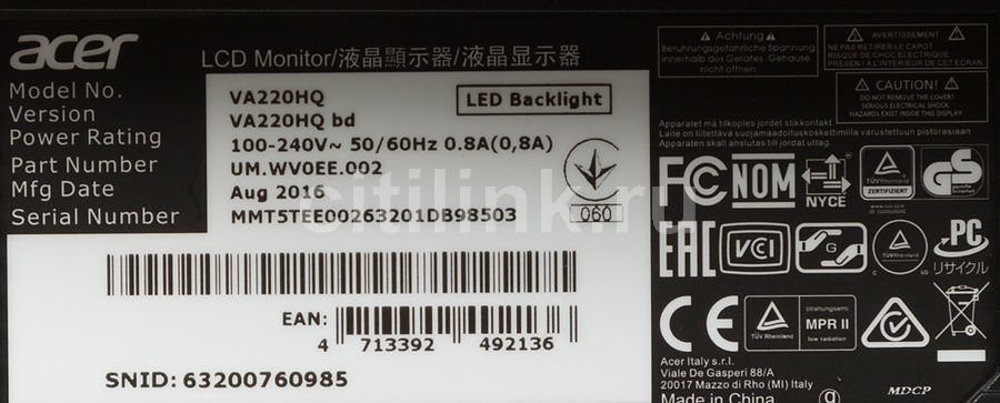 Монитор Acer Сертификат