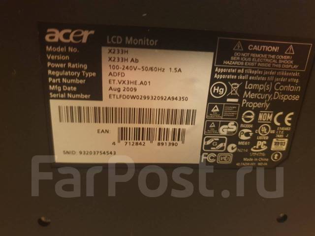 Монитор Acer X233H b 23 дюйма - объявление о продаже в Москве . Цена: 4 500 руб ., дата размещения: 03 .06 .2021 . Монитор Acer X233H b 23 дюйма - купить на Юле . Большой выбор товаров категории «Мониторы» раздела «Компьютерная техника» .