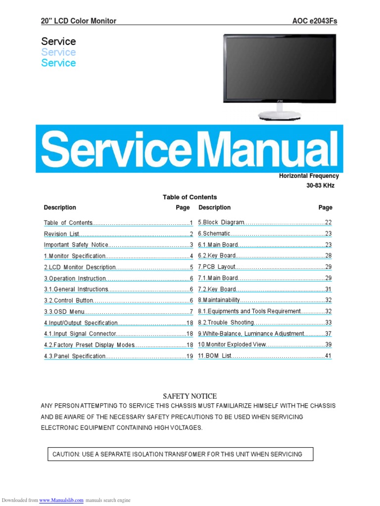 Advertisement . AOC E2043FS Downloads . 1 AOC e2043F Monitor Driver English Windows 8/7/Vista/XP . File Name : e2043f .zip . OS : Windows 8/7/Vista/XP . Release Date : 25 Dec 2013 .