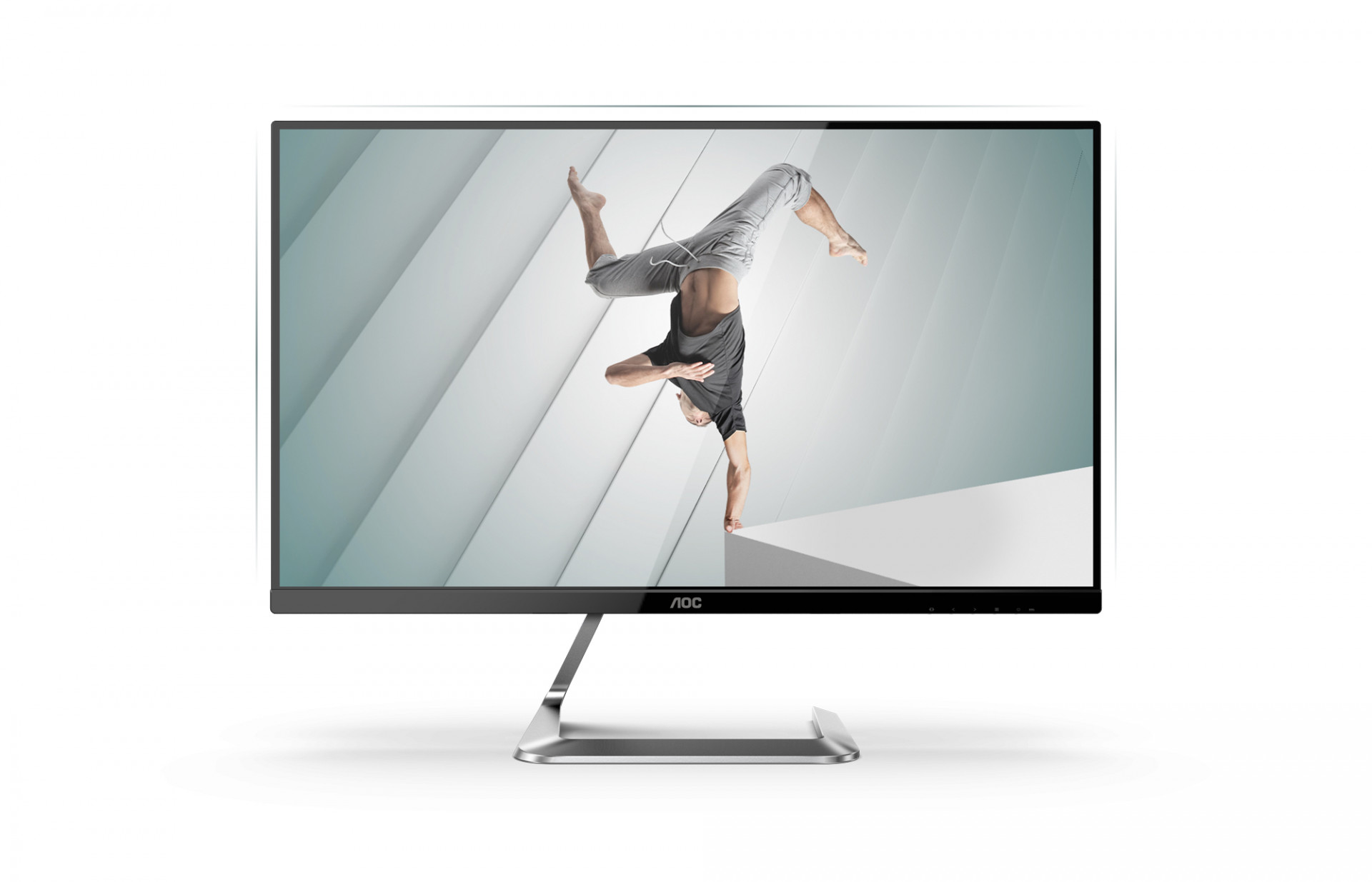 Эргономика aoc q27t1 соответствует общему дизайну: минимализм, стиль и практичность . Маленький бело-лунный светодиод индикатора питания, аккуратные пиктограммы кнопок меню и стилизованный лого компании по центру нижней панели .