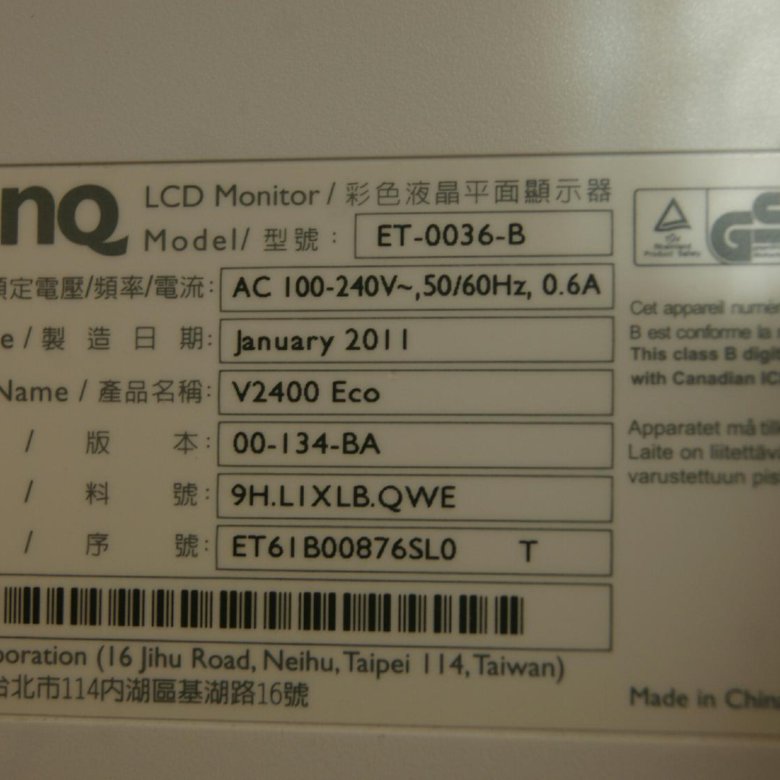 Монитор Benq Et 0036 B