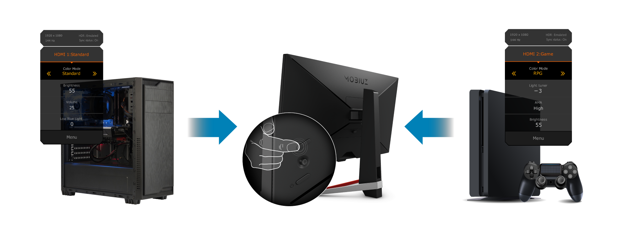 EX2510S will bring you a brand new gaming experience . LIVE the game with MOBIUZ EX2510S . Exit the routine and expand your reality . This 165Hz monitor has lightning-fast 1ms MPRT (Moving Picture Response Time) and AMD FreeSync™ Premium to minimize blur and artifacts . IPS wide-angle viewing shows stunning color from any angle .