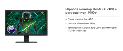BenQ GL2480 24 inch 1080p 1ms, 75Hz LED Gaming Monitor- 1ms GTG Response Time- 75Hz Refresh Rate- Eye-Care B .I . technology, ePaper and color weakness mode