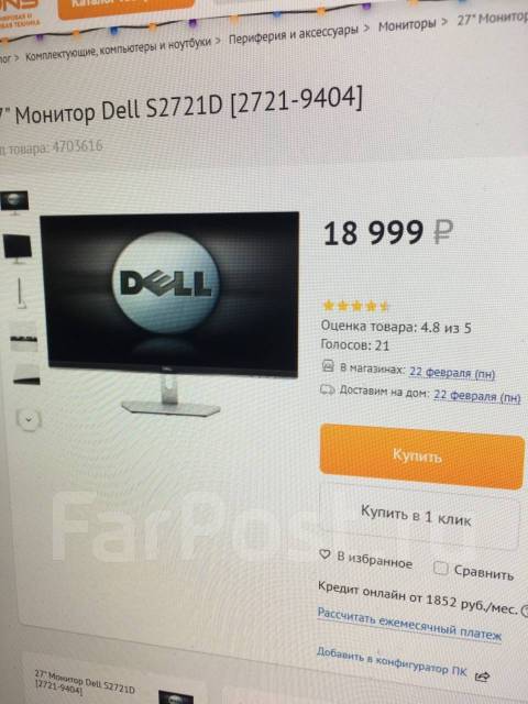Каталог Onlíner . Кешбэк 5% и рассрочка по Халве! Настоящие отзывы . Скидки и бонусы . Купить монитор Dell S2721D