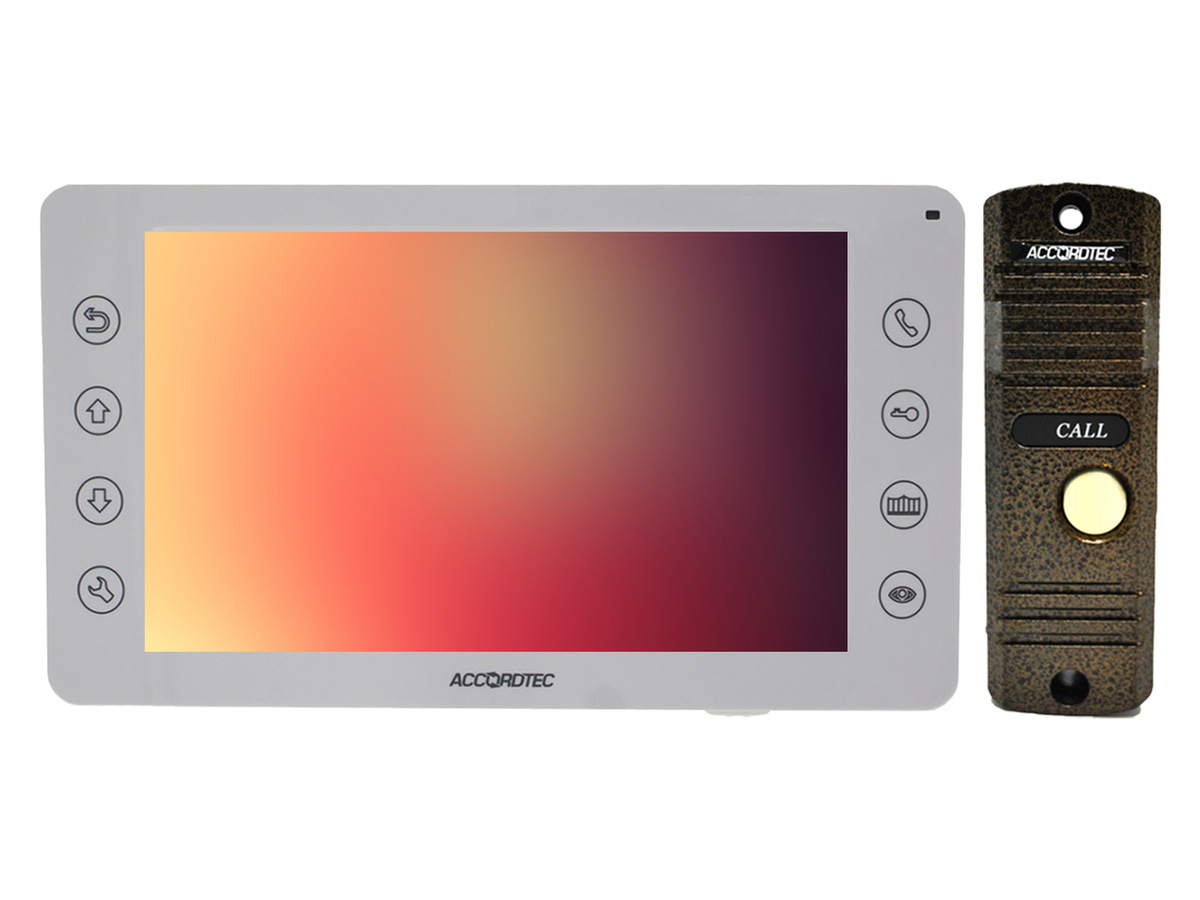 AccordTec AT-VD A752C/SD WH - Видеодомофон 7 дюймов, Сенсорные кнопки, 1080P/720P/CVBS Подключение двух вызывных панелей и двух видеокамер .Календарь, будильник . Загрузка собственных мелодий MP3 в качестве сигнала вызова домофона .