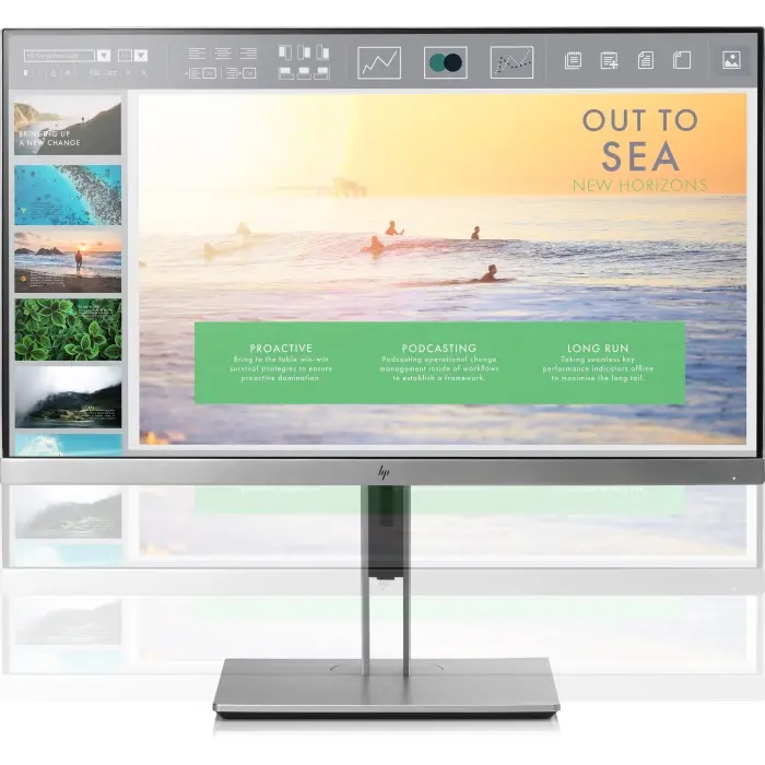 Монитор HP EliteDisplay E233 диагональю 58,42 см (23") с ультратонкой трехсторонней рамкой позволяет легко объединять несколько мониторов, а благодаря возможности регулировать его положение в четырех . . .
