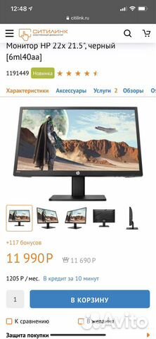 Монитор Hp 22x 6ml40aa