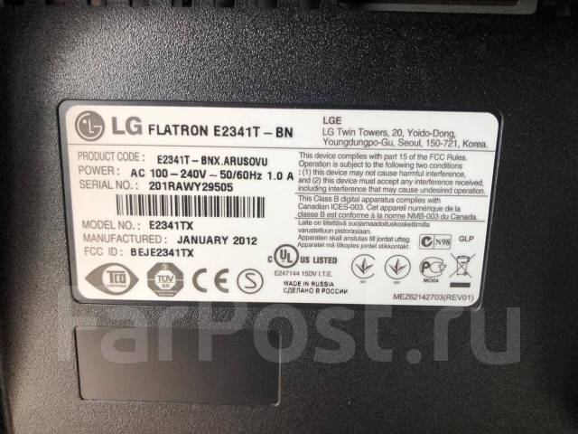 Получите информацию о LG E2341T . Фотографии, обзоры и технические характеристики LG E2341T 23'' LED монитор
