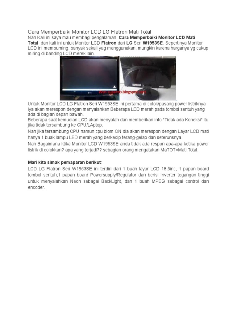 How to repair LG Flatron W1943SE 19" LCD Monitor - YouTube