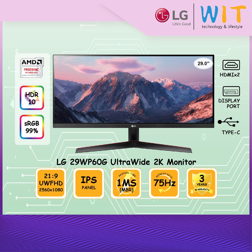 Shop LG 29 in . UltraWide FHD HDR FreeSync Monitor 29WP60G-B and other name brand Gaming Monitors Home Office & School at The Exchange . You've earned the right to shop tax free and enjoy FREE shipping!