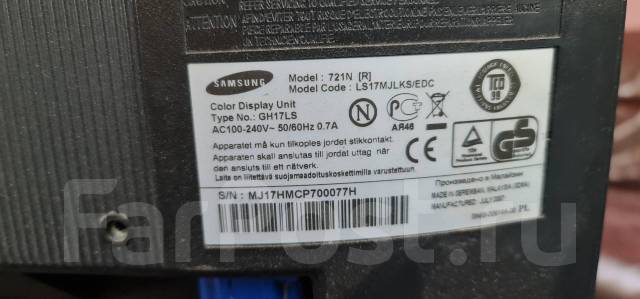 Монитор Samsung 721n(gh17ls) отключается по загрузке