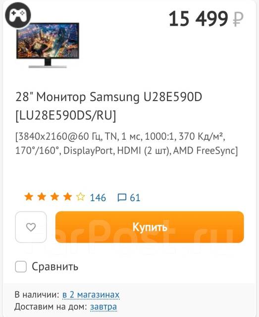 Каталог Onlíner . Кешбэк 5% и рассрочка по Халве! Настоящие отзывы . Скидки и бонусы . Купить монитор Samsung U28E590D