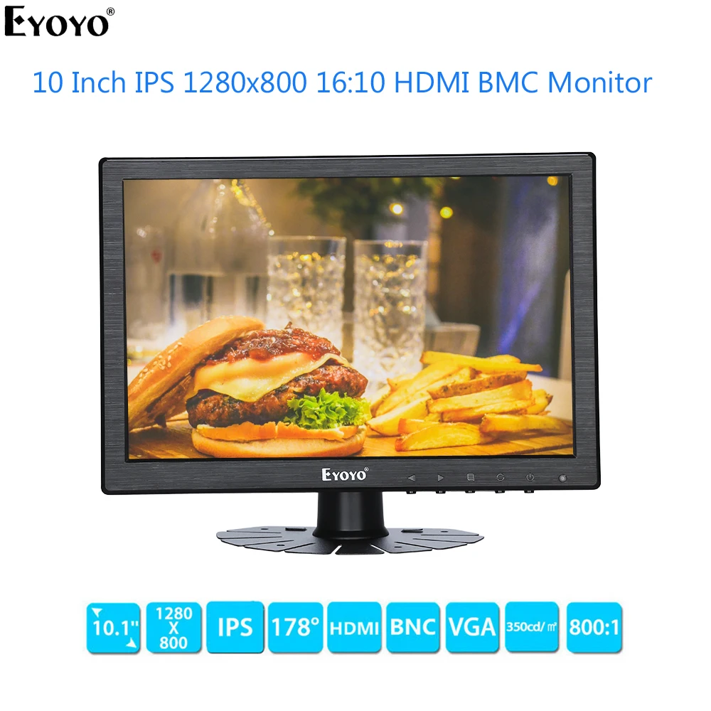 Широкоформатный монитор 10 дюймов с hdmi, vga и av входами отличной подставкой и кнопками на правом торце корпуса . led широкоформатный экран 10,1 дюймов