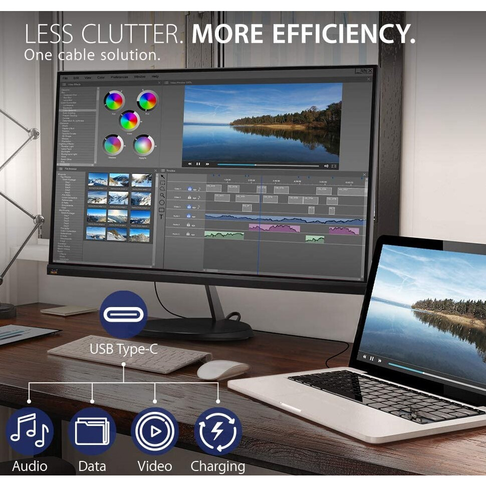 VX2485-mhu24 " Frameless 1080p IPS Monitor with USB C . Designed for the modern-day home office, the ViewSonic ® VX2485-mhu is a 24 " Full HD IPS monitor that combines style with optimal versatility and functionality . Whether for gaming, streaming, or editing, these sleek and slim displays are engineered with the everyday user in mind .