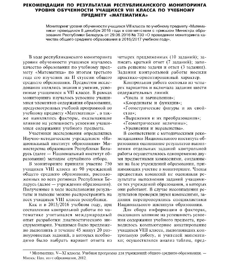 Рекомендации по результатам республиканской контрольной работы по учебному предмету «Математика» (viii класс)