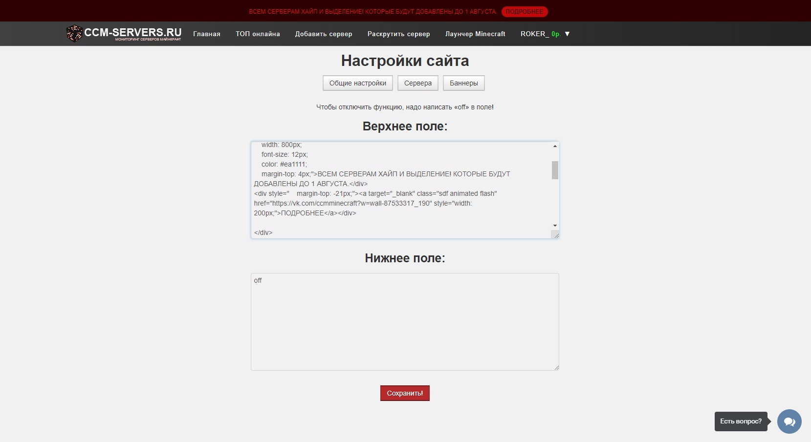 Мониторинг серверов Minecraft, топ серверов
