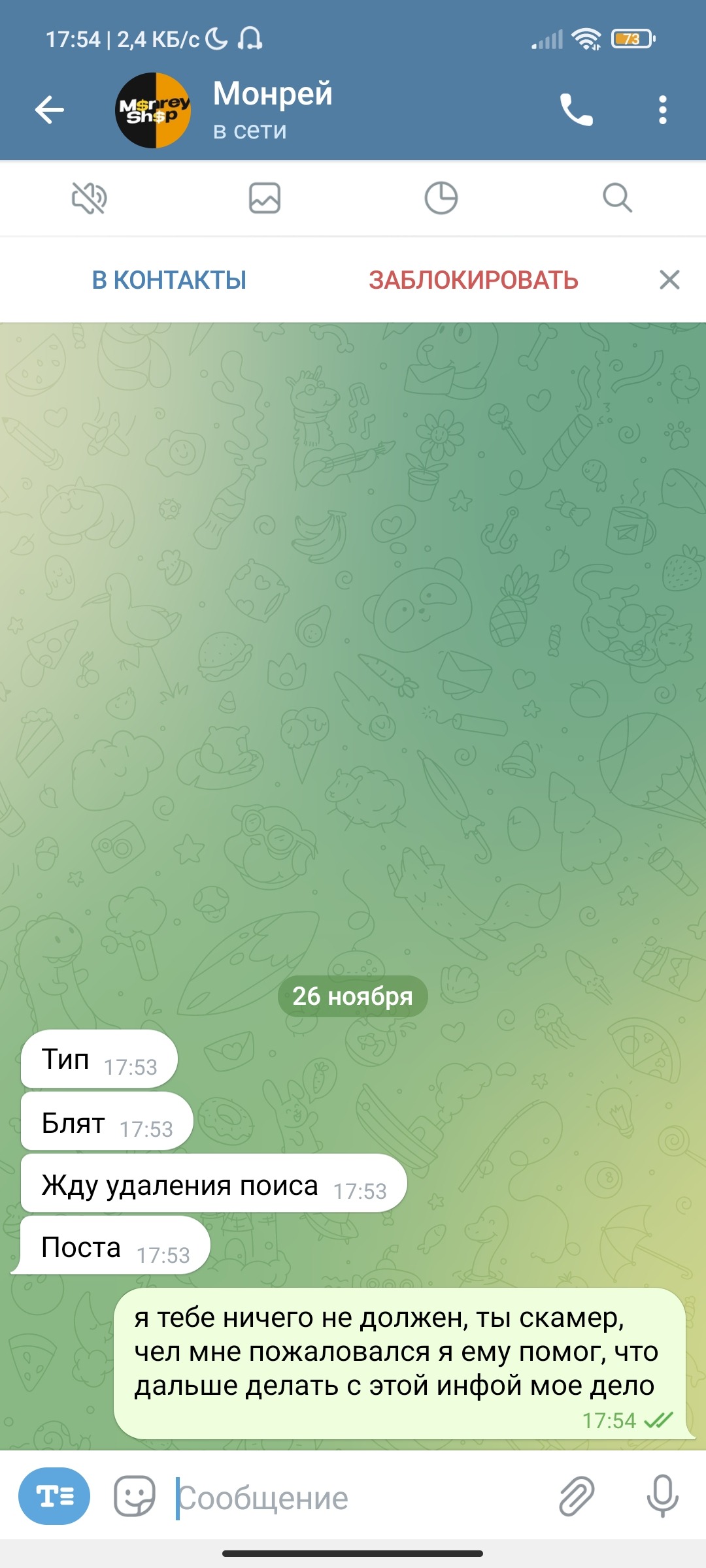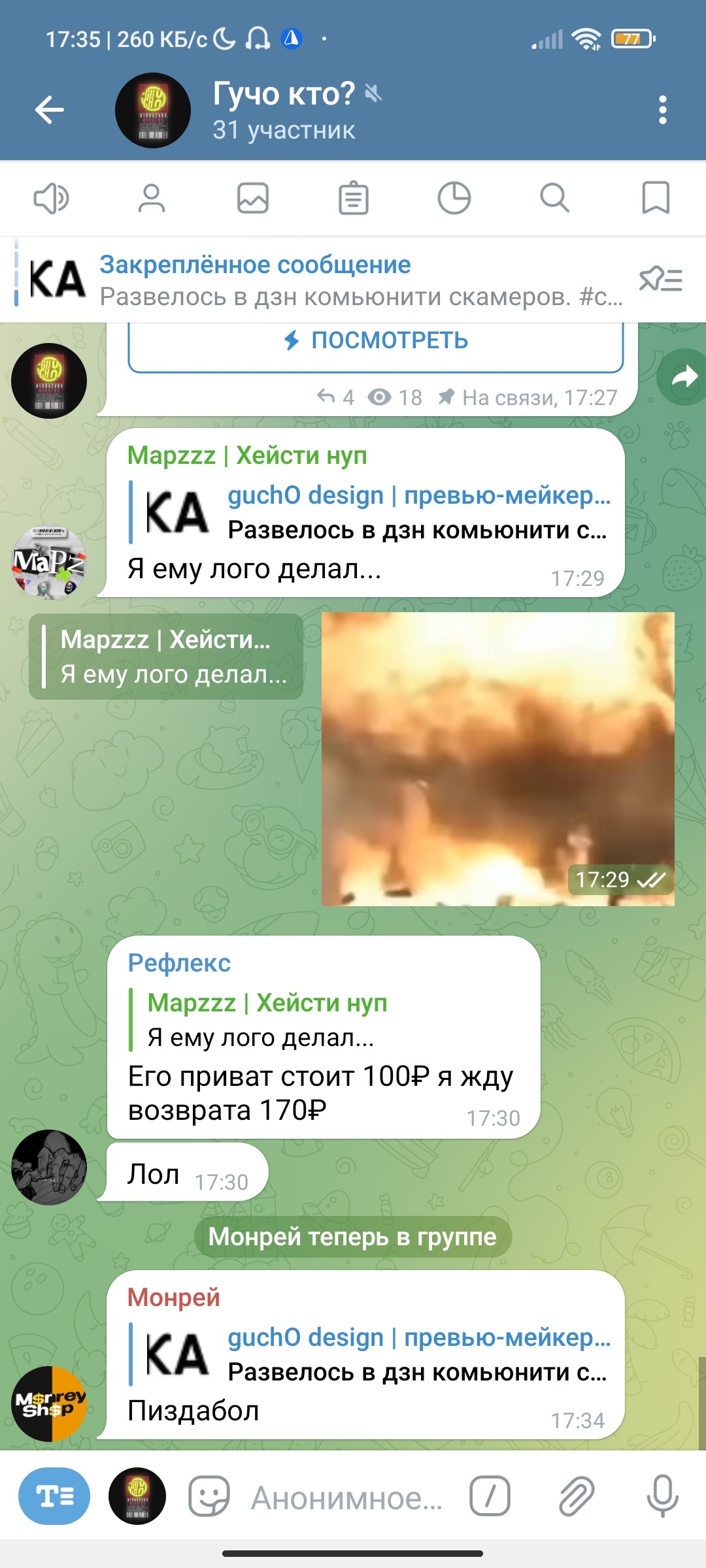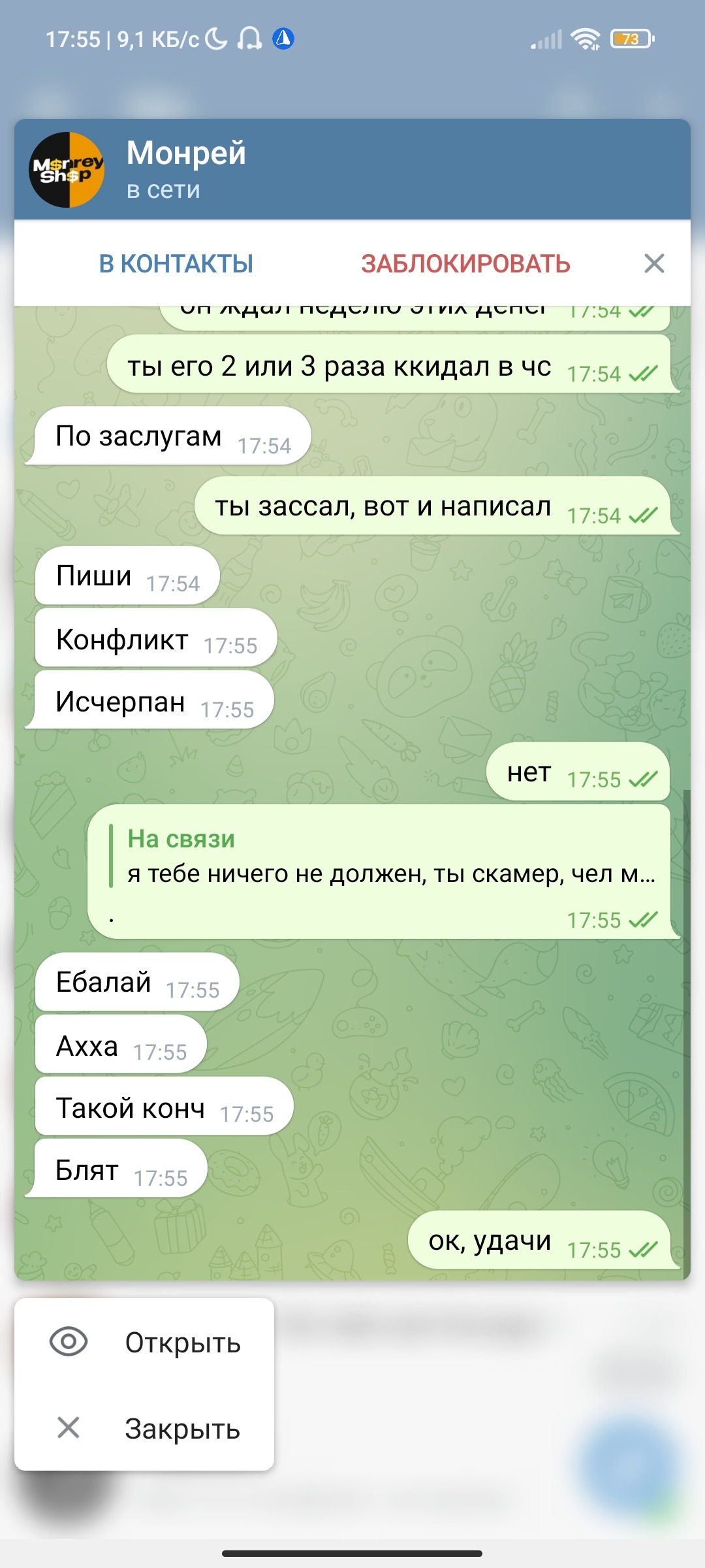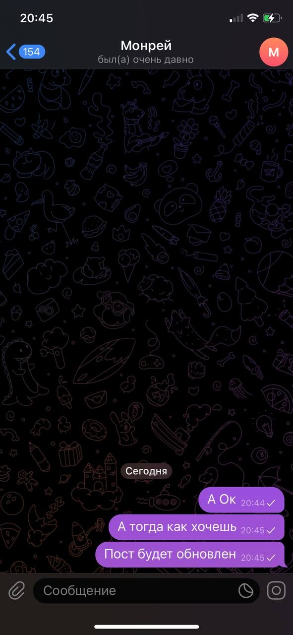 монрей походу не ожидал что мне будут кидать скрины с самого начала переписки и решил удалить, жаль не помогло монрейчик, скамером быть плохо.