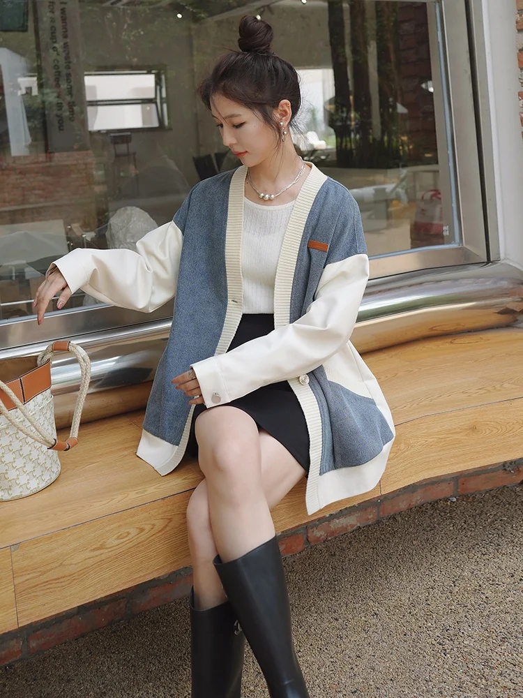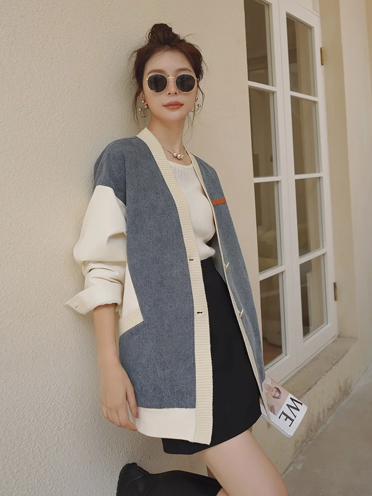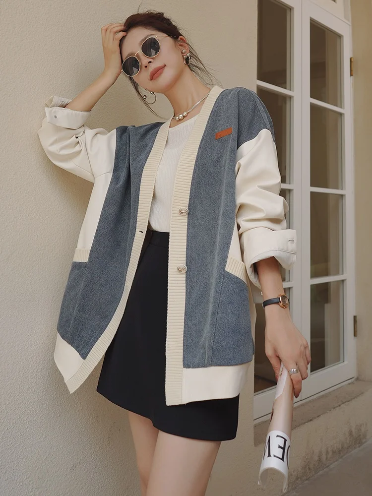 Zhenskaya Dvubortnaya Kurtka S Kruglym Vyrezom Povsednevnaya Modnaya Oblegayushchaya Kurtka S Kistochkami Osen Zima 2023 Kupit 06 08