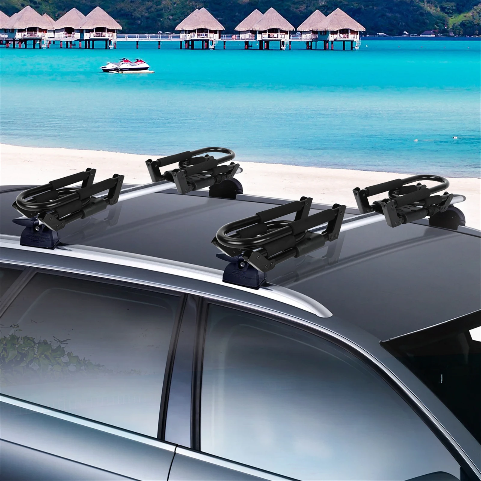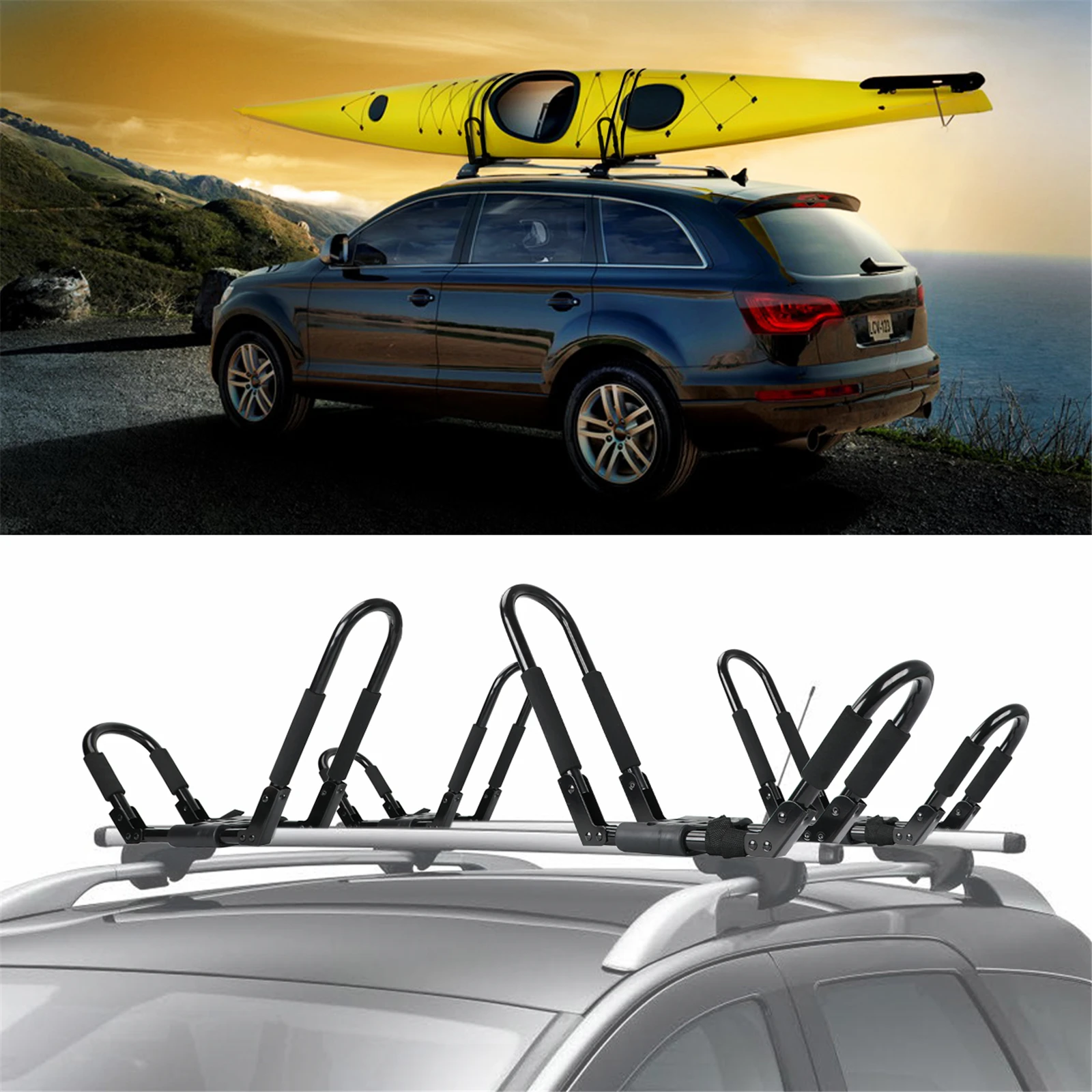 Porte Bagages Atlant Sur Le Toit Dune Voiture Cadillac Bls De 2007 Sur Une Rampe De Toit Standard Arc Aérodynamique Noir 12 03