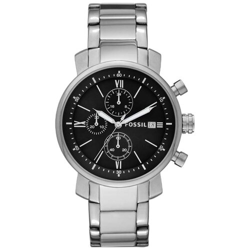 Chronographe classique pour homme Fossil Rhett dans un boîtier rond en acier. L'heure actuelle est dupliquée au format 24 heures sur un petit cadran séparé. Le guichet de date actuel est présent. Couverture arrière vissée. Bracelet avec boucle déployante. 2 ans de garantie. Fonctions : Chronomètre. Nombre. Catégorie : Style rétro Contenu : Montre, emballage de marque, sac de marque, instructions en russe, carte de garantie complétée. Marque Fossil Genre Homme Pays USA Rhett Collection Type de mécanisme Montre à quartz Type de bracelet Acier inoxydable Boîtier Acier inoxydable Verre Minéral Résistance à l'eau WR 50 Couleur bracelet/bracelet Argent Rétroéclairage Aiguille Diamètre 42 mm. Numéro d'article BQ1000Montre-bracelet originale Fossil BQ1000