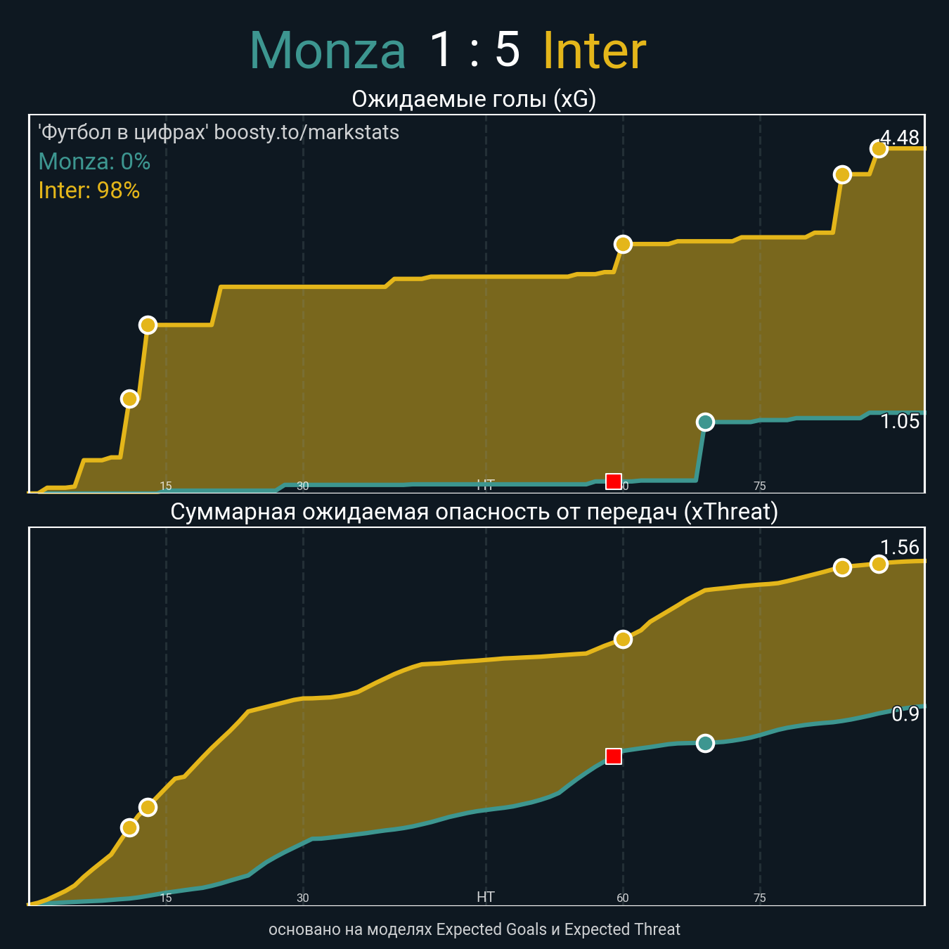 Ожидаемые голы (NPxG): 0.29 - 2.96