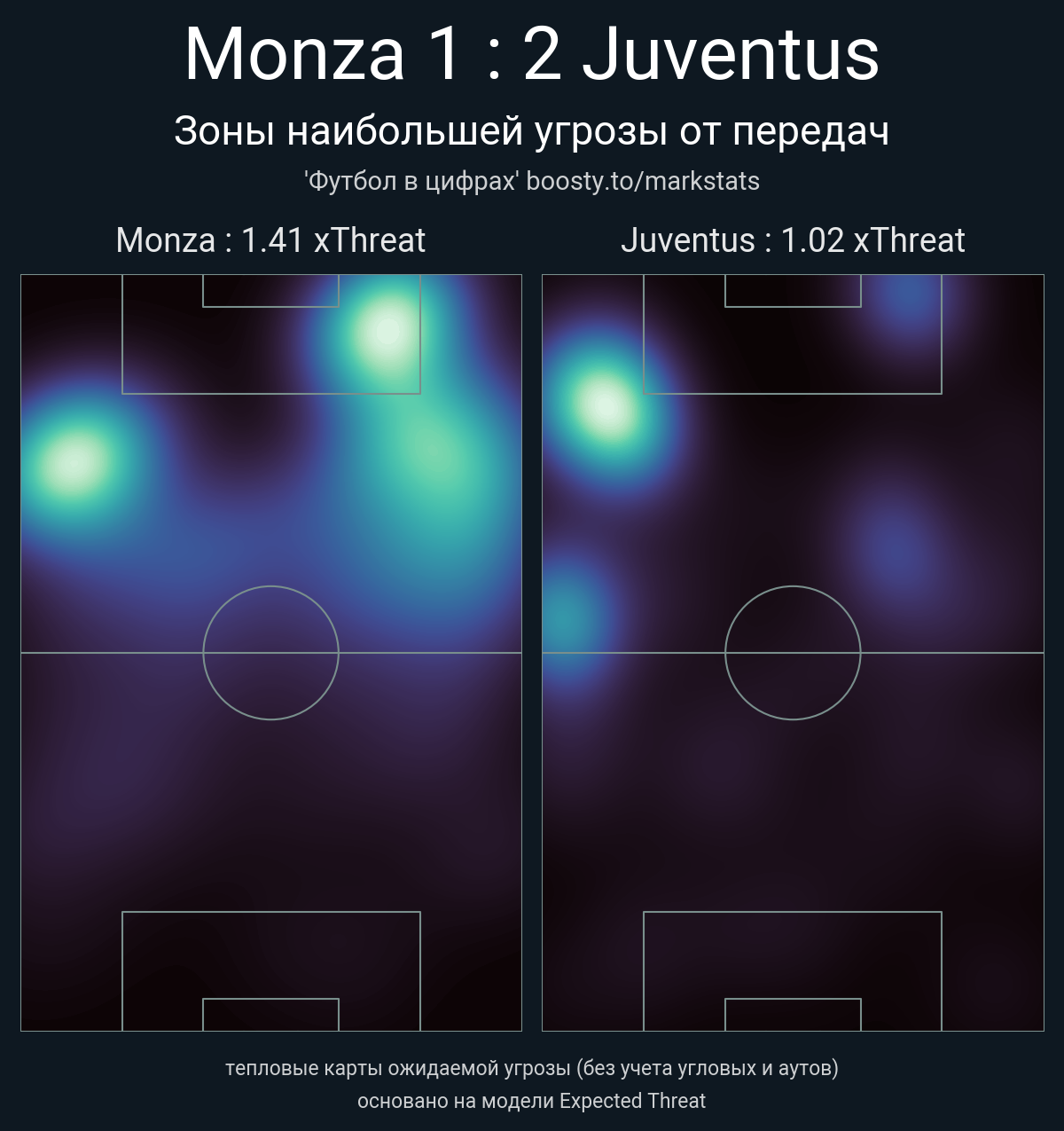 xThreat без учета угловых: 1.41 - 1.02