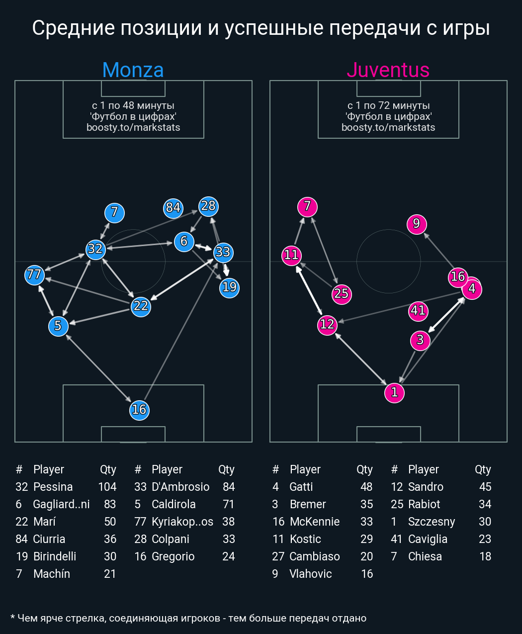 84 успешных передач из 88 попыток (7 с продвижением, 14 на трети соперника)