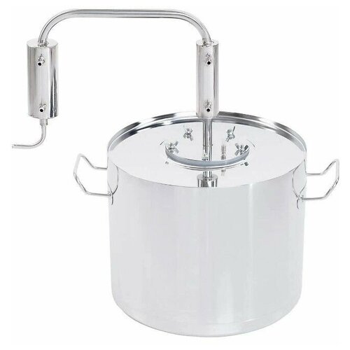 Le distillateur Yeger est un modèle économique pour les moonshiners débutants. L'appareil a une conception simple mais fiable : un cube de distillation avec des parois épaisses de 2 mm et un fond renforcé (3 mm) une buse de distillation avec des tubes de raccordement rallongés Déphlegmateur Type de film Hauteur 11 cm Réfrigérateur Type à flux direct (tuyau dans tuyau) Longueur réfrigérateur 13 cm Cube de distillation 12 l Hauteur du distillateur 23,5 cm Hauteur du cube 22,5 cm Diamètre du cube 27 cm Hauteur totale 46 cm De plus, le kit comprend : 5 joints en silicone alimentaire thermomètre électronique 4 colliers de serrage tuyaux bleu et rouge alcool. recueil de recettes au compteur Les alambics du distillateur Jaeger sont en acier inoxydable (alliage AISI 304). Le métal est chimiquement neutre et résistant à la chaleur. L'acier AISI 304 est certifié et approuvé pour la production alimentaire. L'accessoire distillateur « Jager » se compose d'un cuiseur vapeur et d'un réfrigérateur reliés par des tiroirs semi-circulaires allongés. En se condensant, les huiles de fusel retournent au réservoir de vapeur, et de là