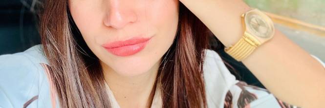 Una brunetta con seni enormi