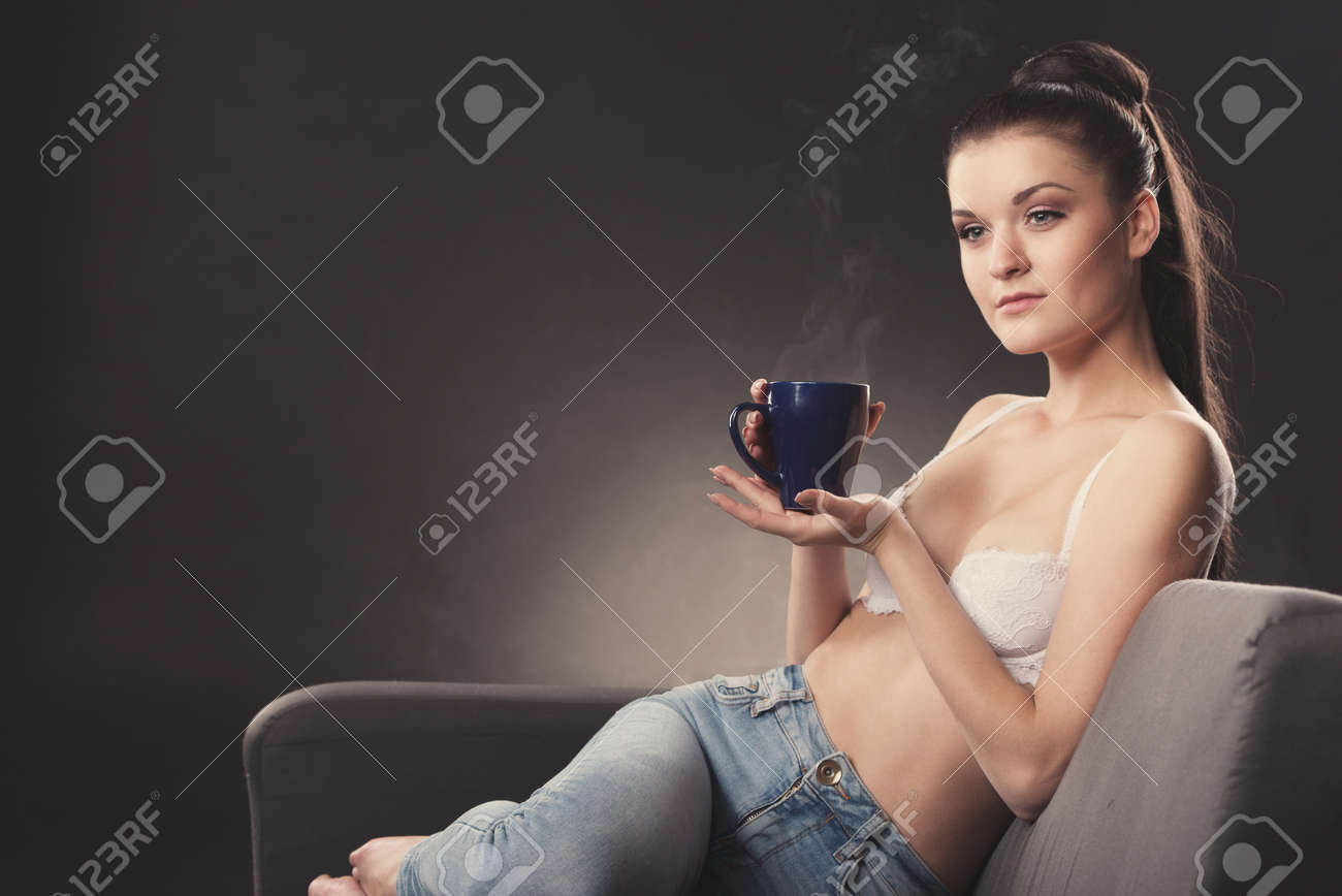 Donna Sexy Mora Che Si Trova Sul Letto Immagine Stock . . .