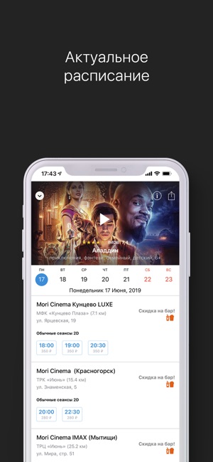 Кинотеатр Мори Синема Череповец, Череповец, Годовикова, 37, ТРЦ «Июнь»: расписание сеансов . . .