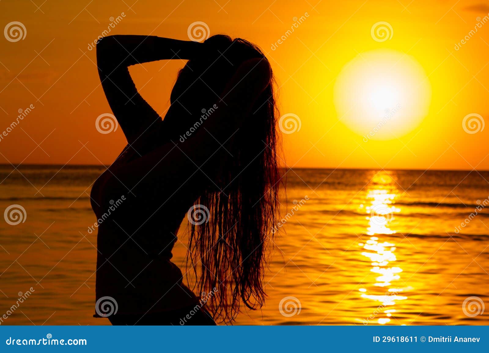 Море Закат Девушка Со Спины Фото