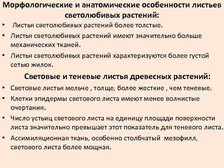 Морфологические особенности листа